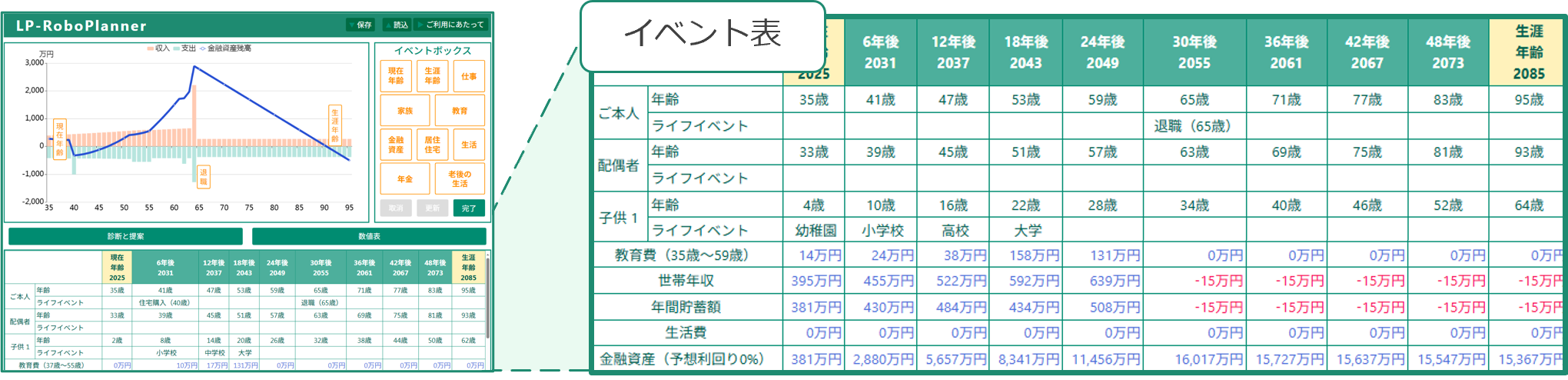 ※こちらでは、「現在年齢:35歳、生涯年齢:95歳」で設定しています。