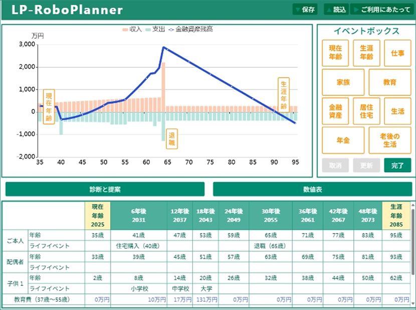 ※こちらでは、「現在年齢:35歳、生涯年齢:95歳」で設定しています。