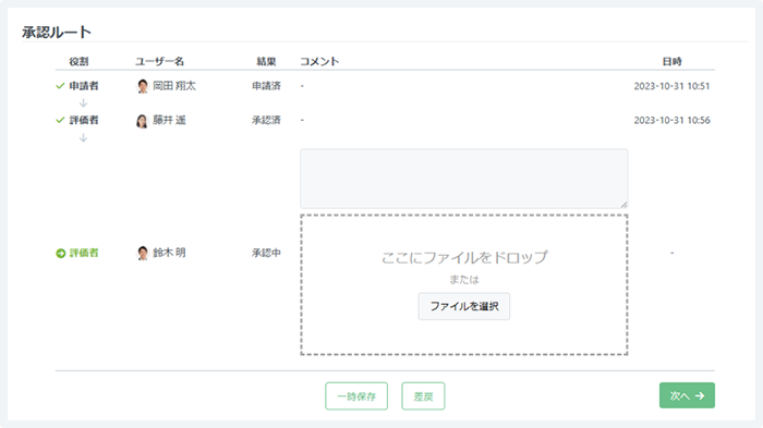向上すべきスキル目標が明確になれば、ペーパレス・効率化されたワークフローで、本人の目標申請と複数の上司承認が速やかに行われます。